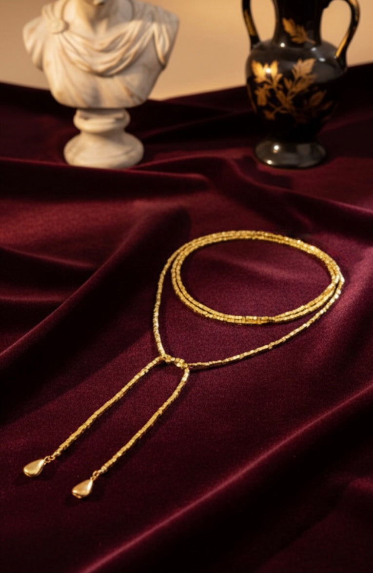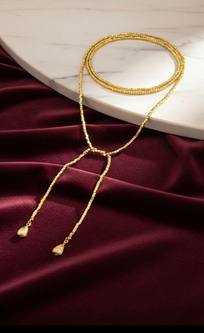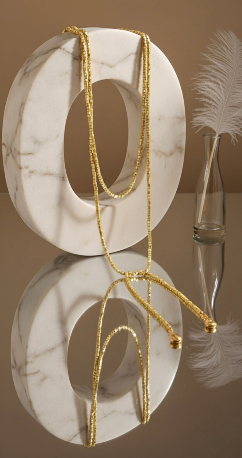 Il design luminoso e raffinato permette di giocare con la fantasia: puoi indossarla lunga, doppia, annodata o regolata secondo il tuo stile e il tuo umore. Una collana versatile, capace di trasformarsi e adattarsi a ogni outfit, dal più semplice al più ricercato.💛