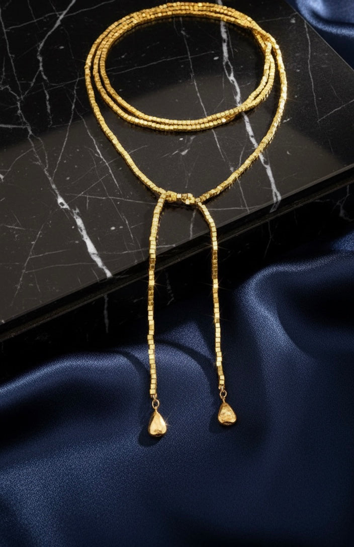 Il colore dorato brillante cattura la luce con eleganza, donando un tocco caldo e sofisticato senza risultare eccessivo. Grazie alla lunghezza regolabile, puoi personalizzare la vestibilità in totale libertà. 💫