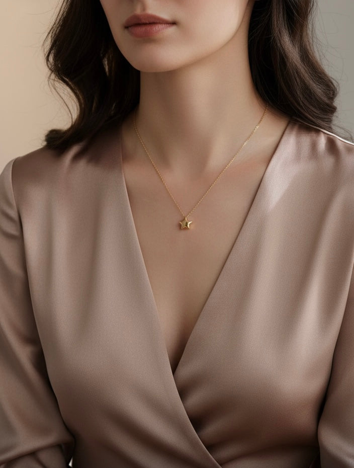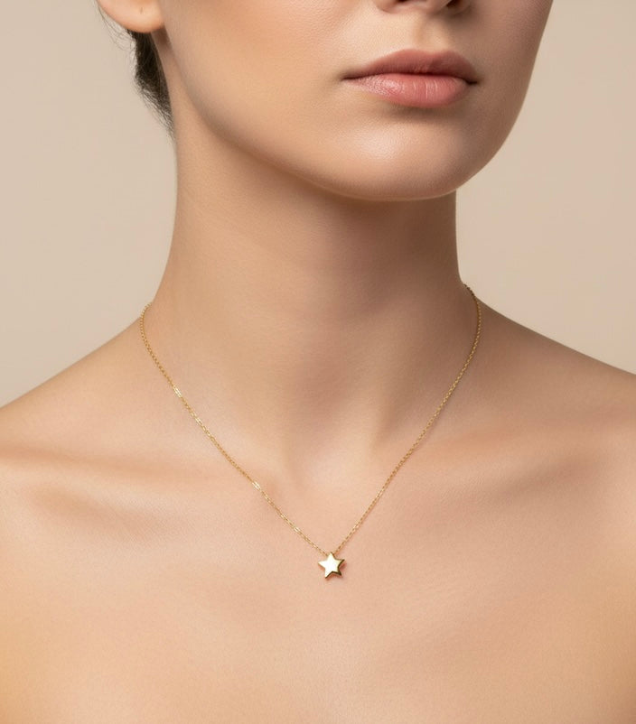 Delicata e luminosa, questa collana è perfetta per chi ama i gioielli minimal e raffinati. Il ciondolo a stellina dorata cattura la luce con eleganza, mentre la struttura in acciaio inossidabile garantisce resistenza e brillantezza nel tempo.